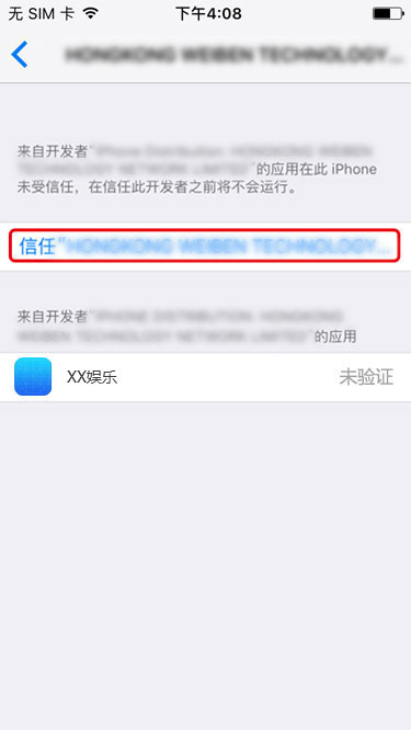 打开APP,如弹出 未受信任,需要继续受信任才可以操作,点击 取消